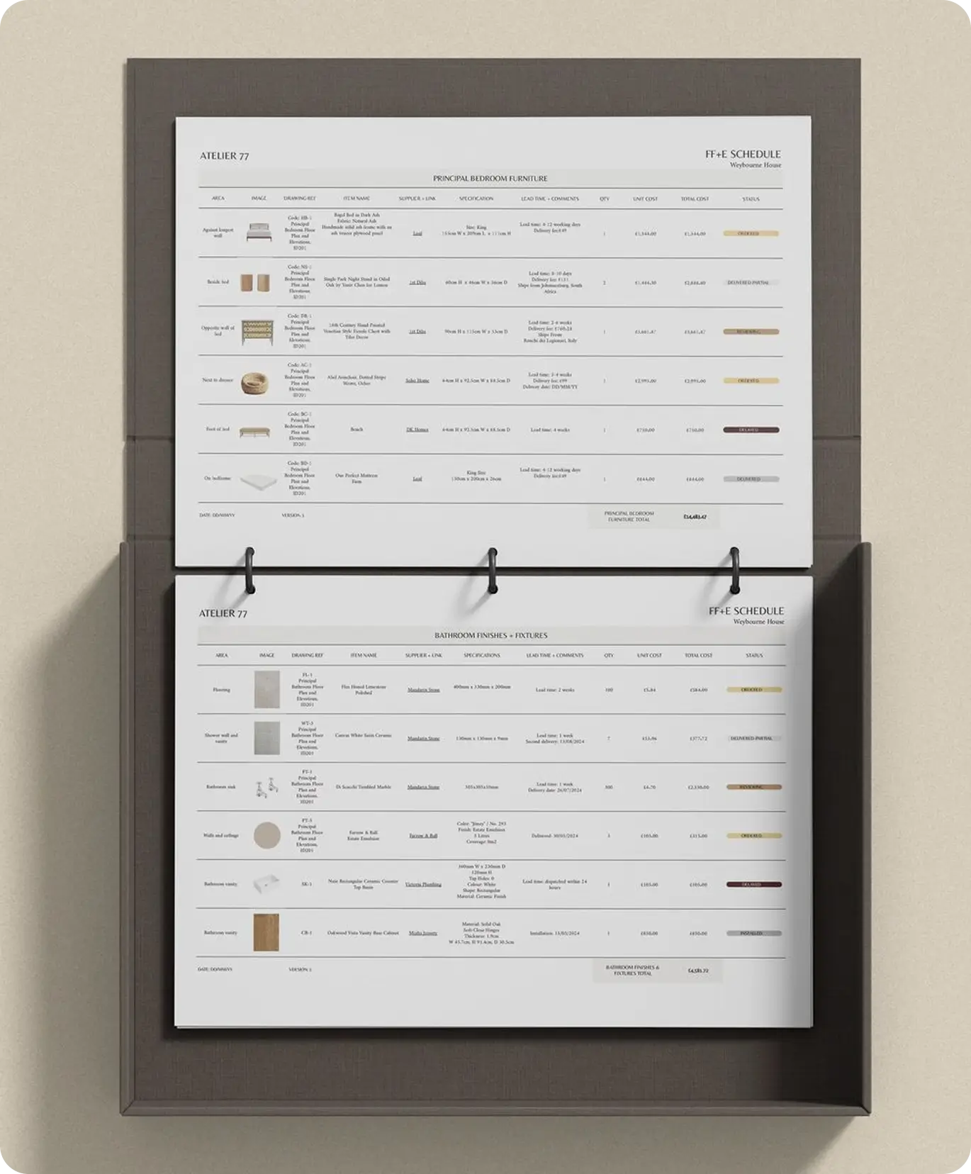 Curate materials and finishes with our interior designer, then approve each selection. No back-and-forth emails.