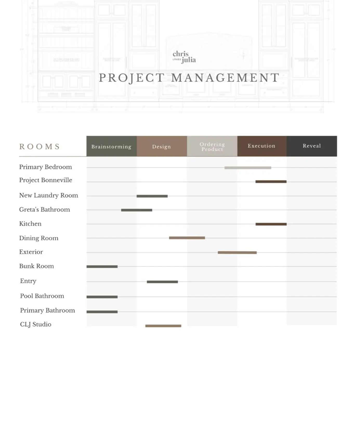 A detailed Gantt chart shared with all contractors to hold everyone accountable and keep you informed at every phase.
